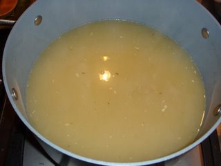I let this mixture simmer for a few hours. The smell was intoxicating… all those different onions, combined with the fat that had congealed at the bottom of the chicken container and the addition of the lemon created quite the fragrant stock.
