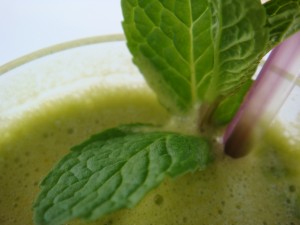 1/4 c Fresh MintJuice everything… but when you do the mint, “ball it up” and push it through with a larger, harder piece of fruit on top of it (like the apple). Serve immediately.