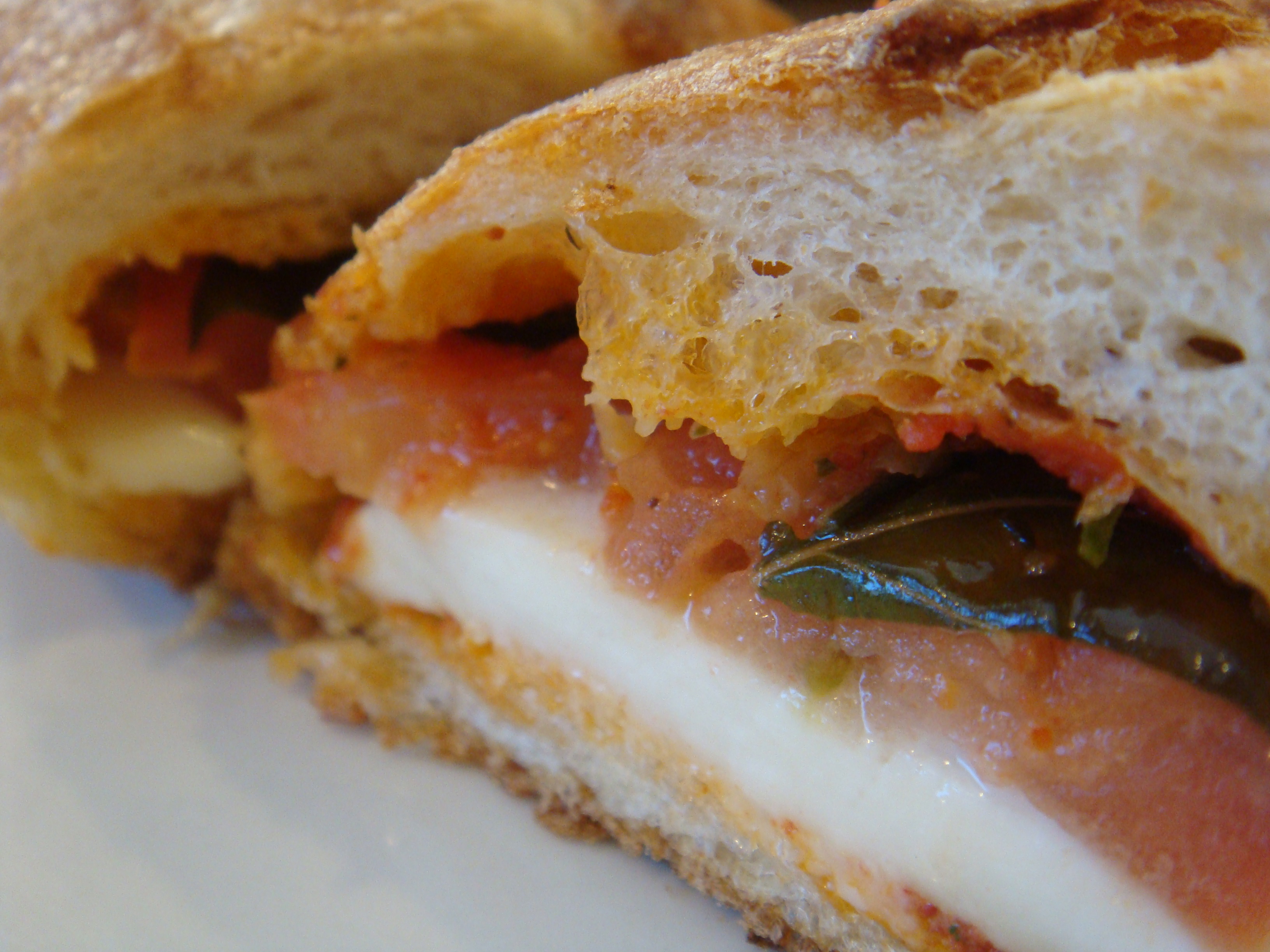 The menu contains many items in addition to the famous crepes and other breakfast treats… such as a delicious assortment of salads, sandwiches and paninis. On one visit, I had The Caprese — Buffalo mozzarella and tomatoes accented with homemade tomato pesto and grilled on a baguette ($7). As you can see by the photo’s below, it was oozing with delicious cheese and pesto and was served on a perfectly-crisped bread.