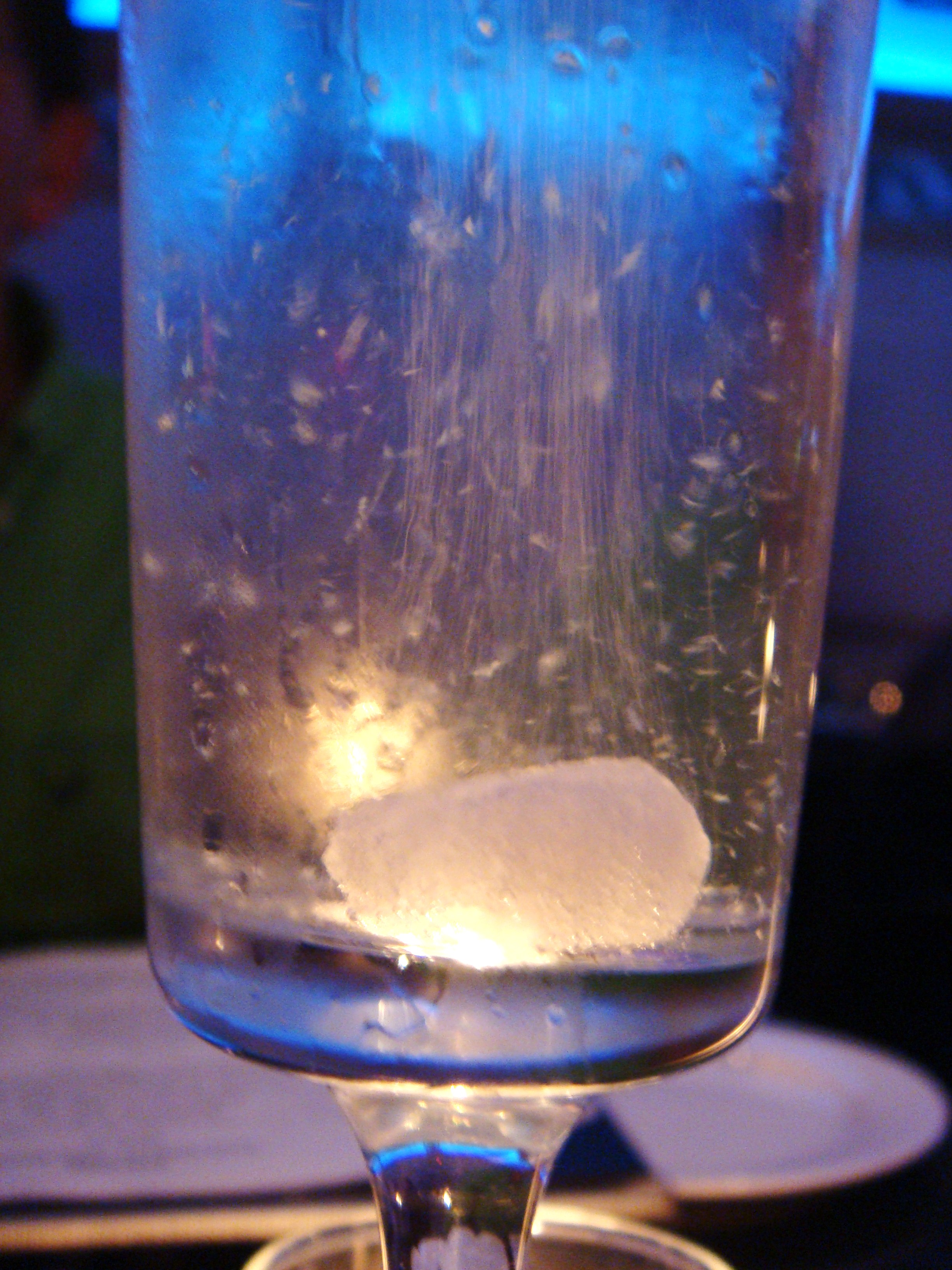 On the downside, it’s quite dark — with blue background lighting… so getting photos of food is pretty much impossible. Though, I was able to score this awesome photo of my cocktail: